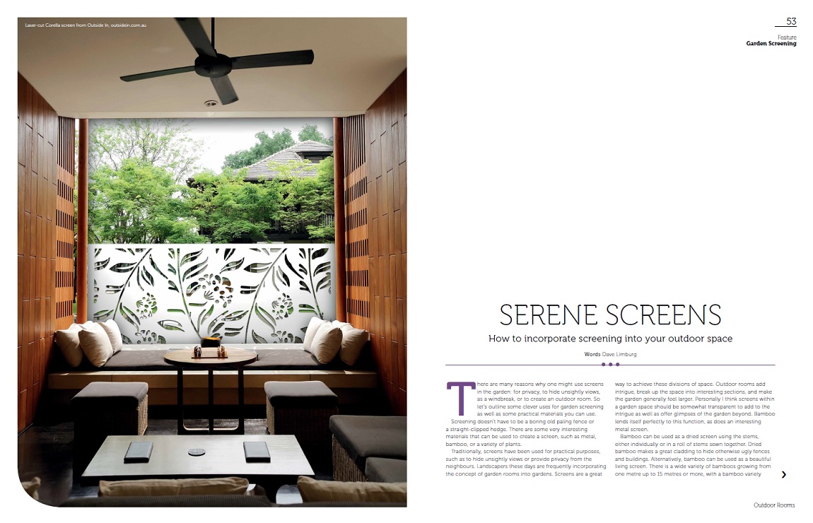 Garden Screens – Outdoor Rooms Magazine ‘Serene Screens’ – Outdoor Rooms Magazine Garden screening tips and Ideas. Article by Dave Limburg of Online Garden Design for ‘Outdoor Rooms Magazine’ Episode 20 2013